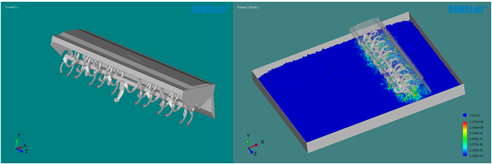 基于DEM-MBD的單向及雙向耦合接口,可以實現(xiàn)顆粒-設(shè)備之間復雜的動力學計算以及柔性設(shè)備的變形計算。