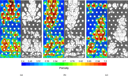 如基于DEM-CFD耦合,還可在流體軟件中獲取流體速度、流體溫度、以及顆粒相對于流體的體積分數(shù),可用于分析氣粒混合均勻性。