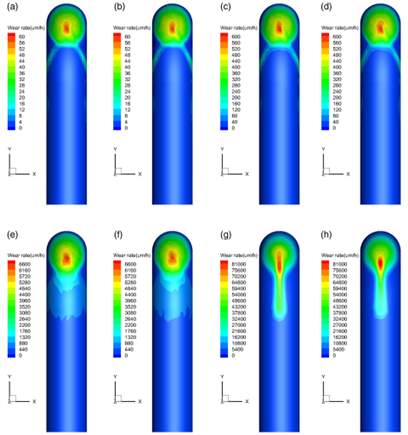 基于顆粒-設(shè)備之間的磨損模型,在后處理中還可分析設(shè)備的磨損,對于研究設(shè)備磨損的過程具有很好的理論指導作用。