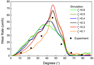 通過模擬發(fā)現(xiàn)在床層的不同位置,管的磨損分布是不同的,而且位于床層不同位置的管的磨損率值也不同,另外顆粒的摩擦系數(shù)對管道的磨損也存在一定的影響。